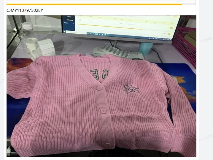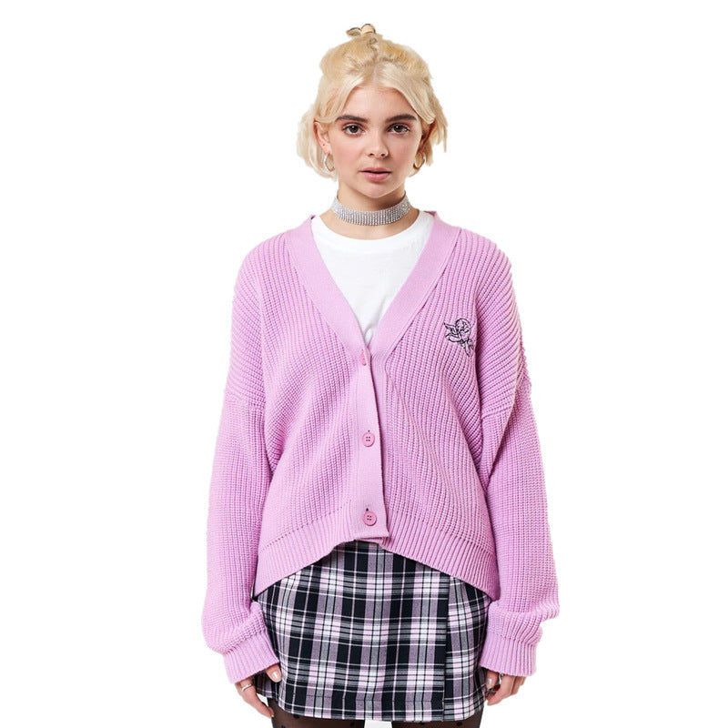 Angel Embroidery Loose Knit Sweater Coat Button Sweater Women
