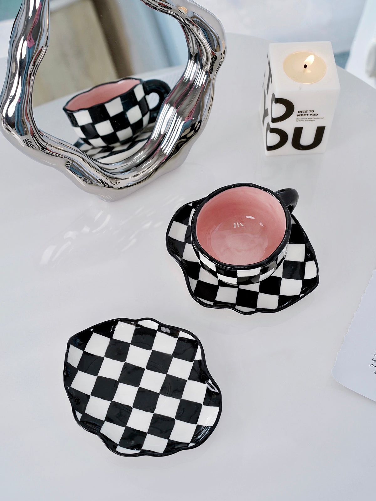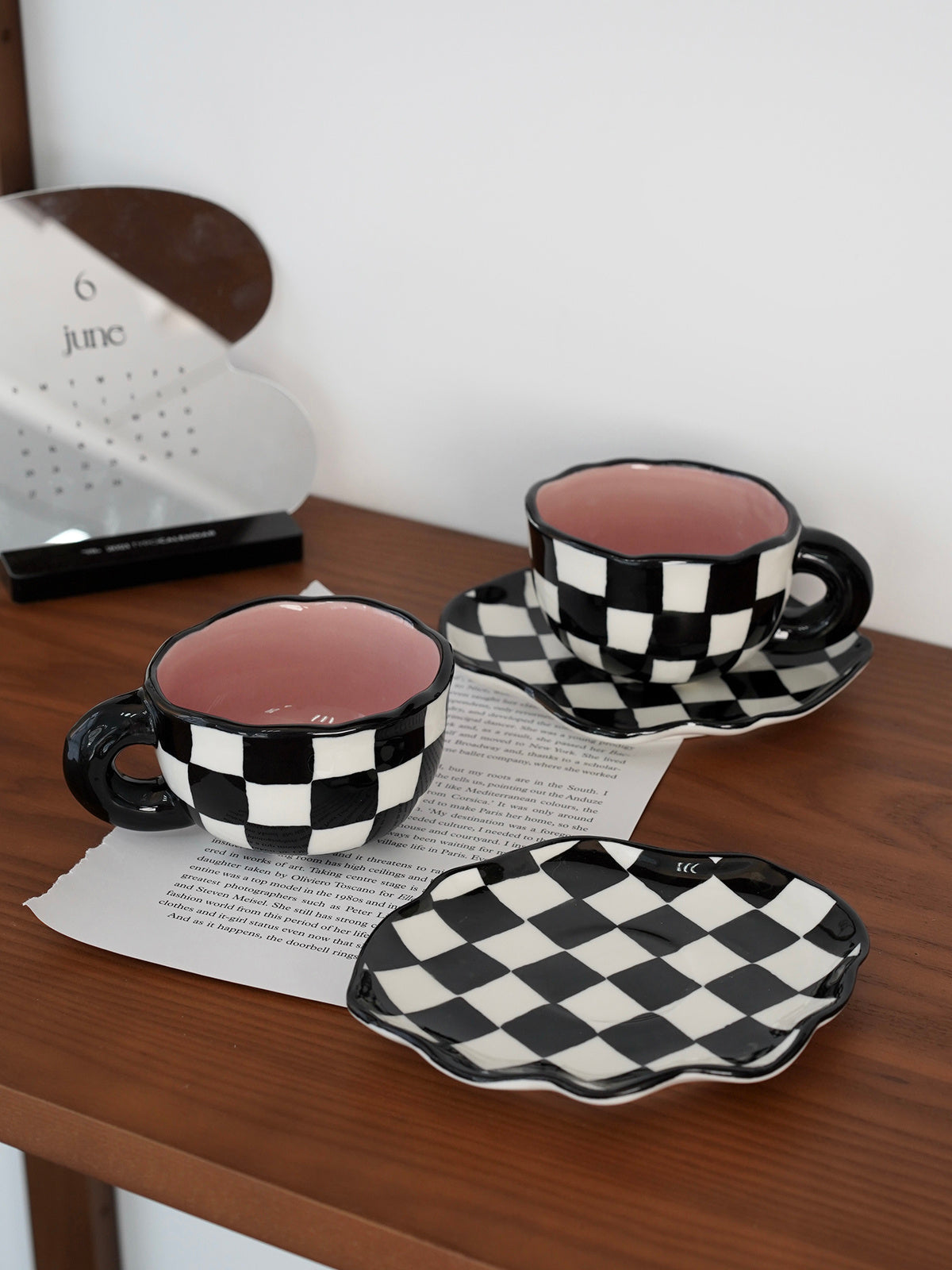 Color classification: pre-sale black and white checkerboard hand-painted cup and saucer coffee cup