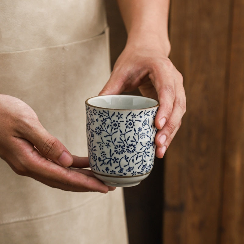 Large Capacity Ceramic 200ml Outer Grain Straight Mouth Tea Cup