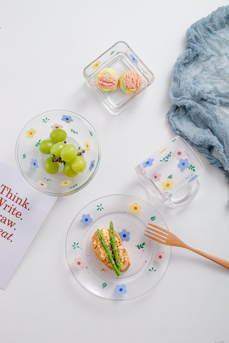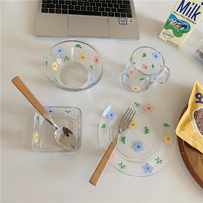 Little Flower Cutlery Set Glass Cup Glass Bowl Glass Plate Feng Shui Cup Cute Cup