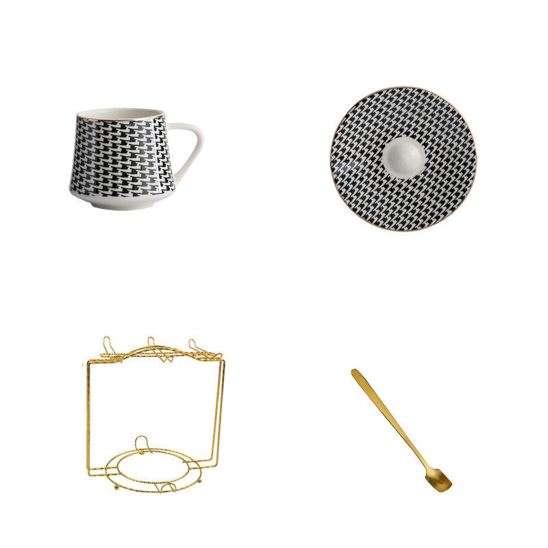 Style: set:6 cups and 6 dish spoons, golden shelf
